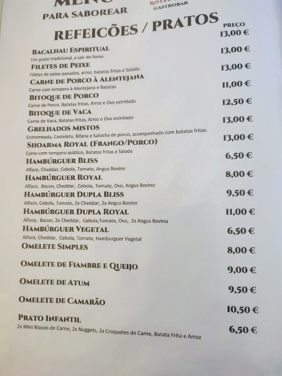 Welcome to Royal Bliss Gastrobar, a delightful cafe nestled in the heart of Alcobaça, Portugal, boasting a stunning view of the majestic monastery. The menu offers a variety of fresh and healthy options, ensuring a satisfying experience for every palate.